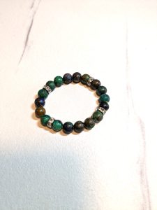 ↑こちらは、ラピスラズリとモリオンを使った男性用のブレスレットで直径が18㎝あります。